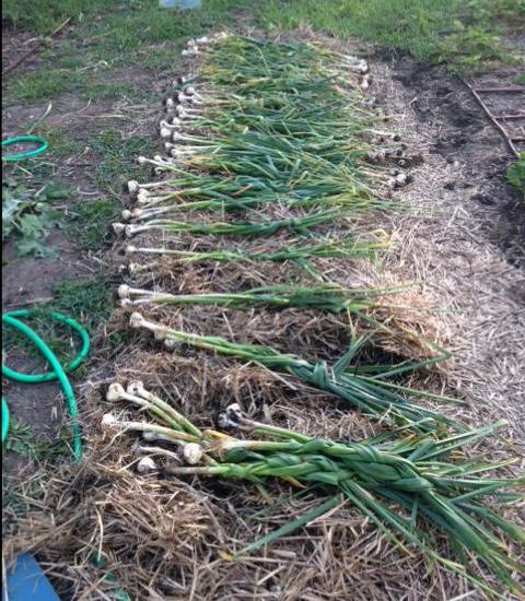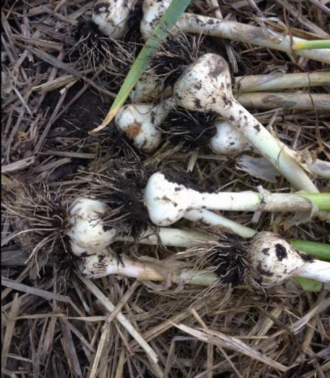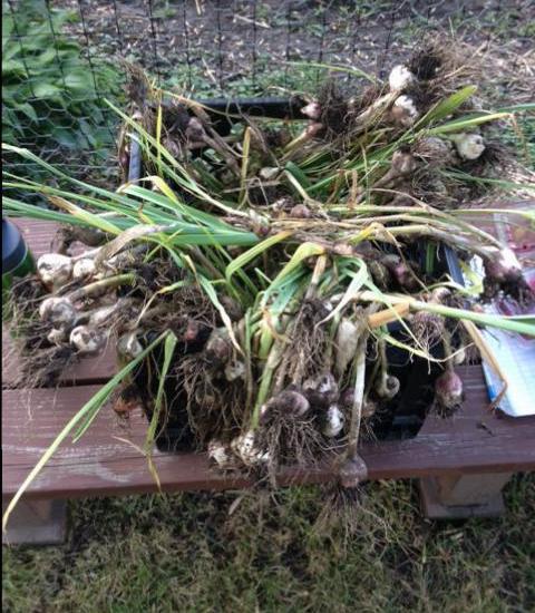 Great harvest of garlic and berries today at the Food at First Garden. Would be great to see you out there. We make Sauerkraut this week on Thursday at Trinity Church at 3626 Ontario. Email us at foodatfirstgarden with questions.